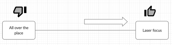 The above continuum shows All-Over-The-Place on the left side and Laser Focus on the right side. The more your website leans towards the right side of the continuum, the greater the chance that the people you’ve chosen to help with your services will feel heard and choose you.