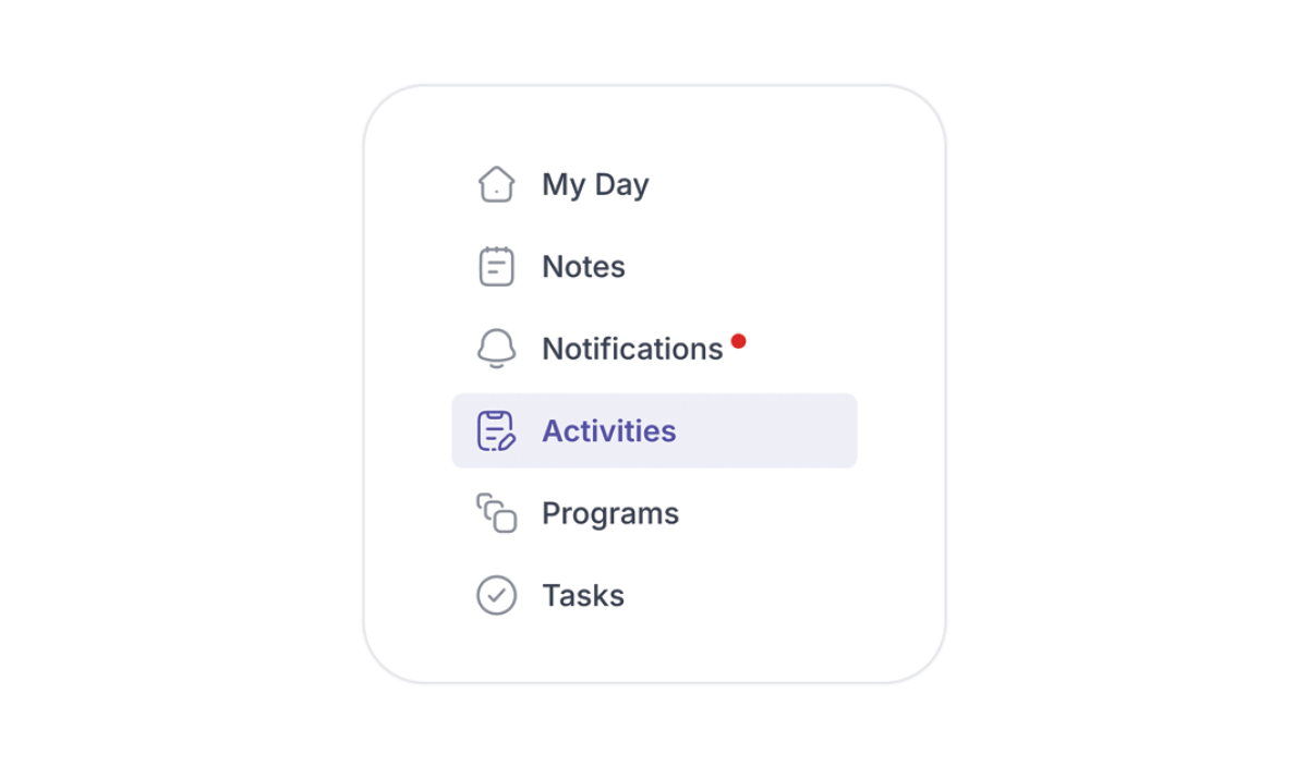 Once an item is completed, it’s removed from the “My Day” view and automatically organized in its relevant list (Activities, Programs, or Tasks).